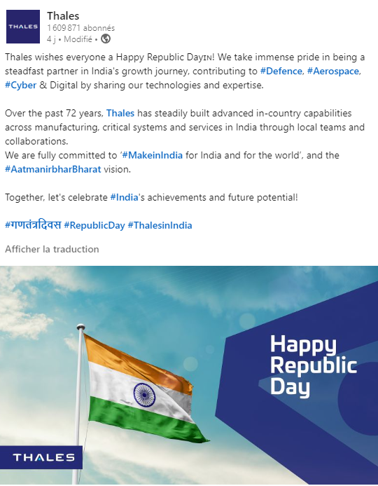 Thales célèbre la Journée de la République avec l'Inde ! 🇮🇳